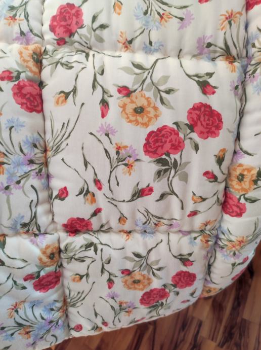 Po naročilu in izboru materiala izdelani dve prešiti odeji. Polnilo je 100% volna, zunanje blago je saten iz 100% bombaža.