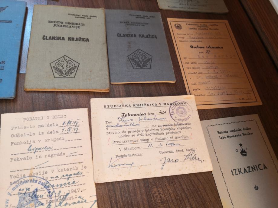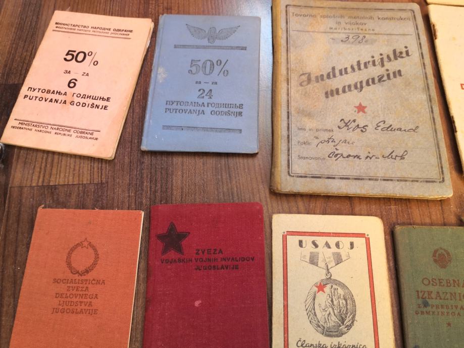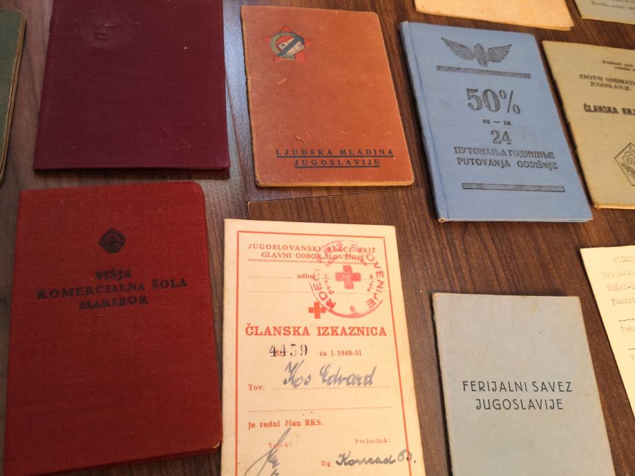 Prodaja SE OSEBNA ZBIRKA lot raznih starin izkaznic,knjižic,,,,legitimacija, legitimacije,