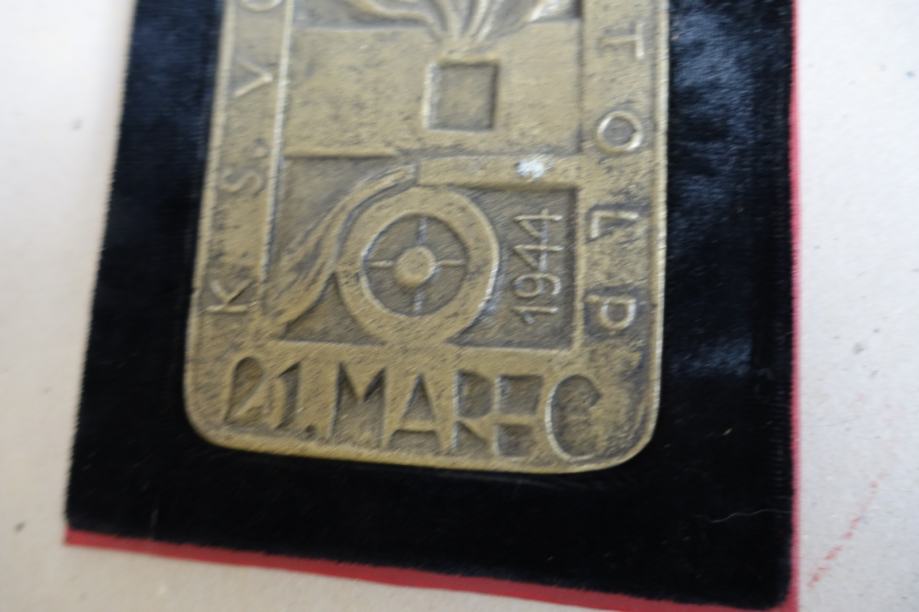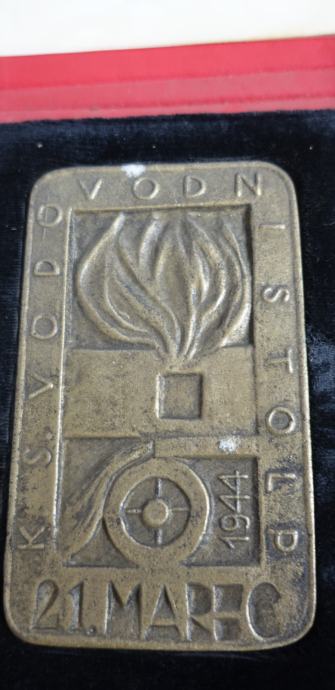 Na njej napis KS Vodovodni stolp, 21. marec in letnica 1944