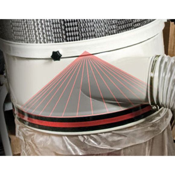 Kakovostni odsesavalec prahu, za povezavo z več stroji. Z zračnim pretokom 2900 m3/ura bo z lahkoto upravljal s 3 stroji. Je robustno zgrajena, tiho delovanje, učinkovitost in dizajn bodo ustrezali večini zahtev, ki jih najdete v tipični mizarski delavnici. Opremljen je z visokozmogljivim jeklenim ventilatorjem in edinstveno tehnologijo "Vortex", ki ohranja visoko zmogljivost zbiranja, saj preprečuje predčasno zamašitev filtra. Štiri kolesa zagotavljajo splošno mobilnost. Priloženo z 10 vrečkami za zbiranje in filtracijsko vrečko za delce do 30 mikronov. Cev ni vključena.