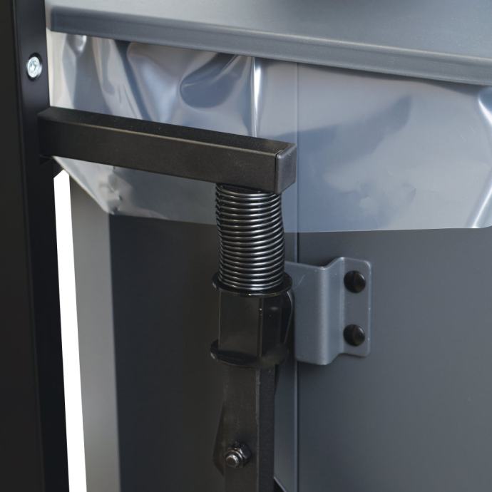 Praznjenje bobna za odpadke še nikoli ni bilo lažje. Pameten dvižni mehanizem dvigne zabojnik z enim potegom vzvoda. Z dvigom ročaja se posoda spusti. Potiskanje vzvoda učinkovito dvigne boben in ga tesni ob pokrov bobna. To dvigne posodo do sesalnika in celoten stroj je enostavno premikati po lesarnici ali uporabljati s talnim požiralnikom. Posoda z bobnom za odpadke je opremljena z koleščki za enostavno premikanje. Pomična kolesa kolektorja so zdaj tudi zavirana, da je kolektor trdno na mestu. V zabojniku za odpadke boste zdaj našli tudi LED luč in kontrolno steklo za enostavno opazovanje nivoja napolnjenosti žagovine.