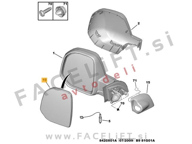 Steklo bočnega ogledala. Steklo je novo.