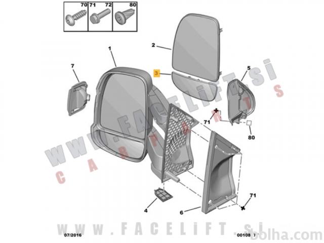 Steklo zunanjega bočnega ogledala. Steklo je novo.