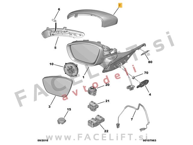 - Opel Corsa, Corsa-e F (od 06/2019 do 12/2023) - samo ogledala z ročnim nastavljanjem