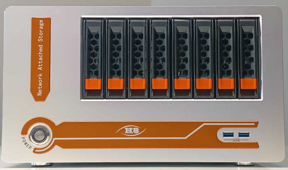 NAS ohišje / mrežna shranjevalna enota – 8× hot-swap ležišč, kovinsko