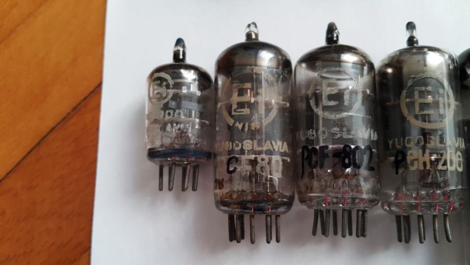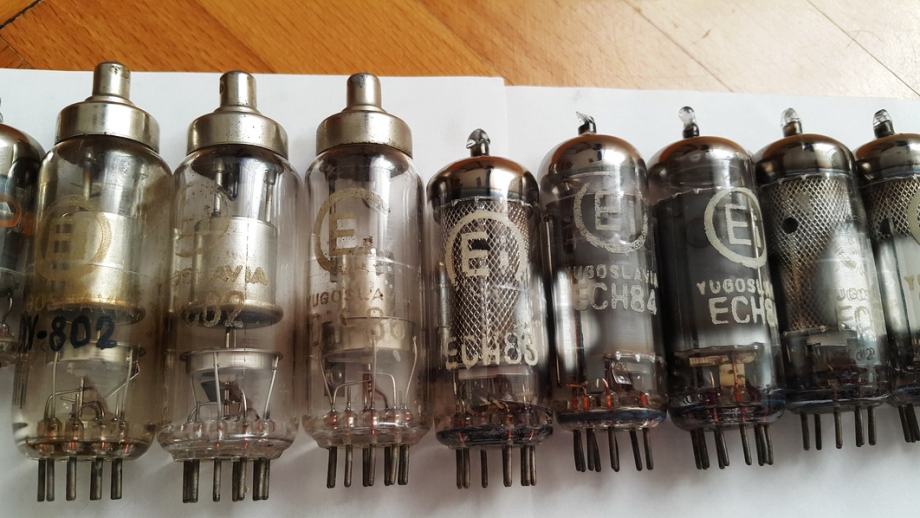 Prodam 26 raznih elektronk različnih modelov. Povečini so od Ei Yugoslavia, nekaj od Denon in v manjšini od Philipsa, Siemensa in Tungsrama. Imam jih sigurno že več kot 30 let. Vzete so bile od starejših CRT televizij, radijev, ipd. So očiščene in vse so bile tudi testirane z ohm metrom (predvsem grelec). Delujoče naj bi bile sicer vse, a se to lahko seveda tudi naknadno preveri še ob recimo osebnem prevzemu. Cena v oglasu je okvirno za posamezno, čeprav so spodaj na seznamu zapisane tudi druge cene oz. imam tudi bolj redke (in so s tem dražje). Rad bi jih prodal čim več, tako da ob nakupu vsaj treh primaknem tudi kakšen popust. Že čakajo na svoje nove lastnike.