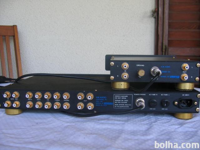 prodam predojacevalca AM AUDIO pre linijo 06 in pre phono mm 02 z nastavitvami za razne odjemne doze . napaja se iz pre linije . v odlicnem stanju izgled kot novo .znamka je italijanska , konstruktor Atilio Conti . karakter zvoka je zelo naraven in linearen po celem frekvenčnem razponu, .zelo priporočljivo . v svojem razredu nima konkurentov posebno za ceno 1000 € .Lp . BREZ SMS !