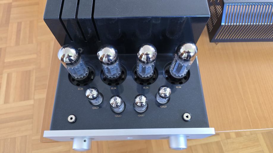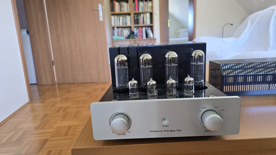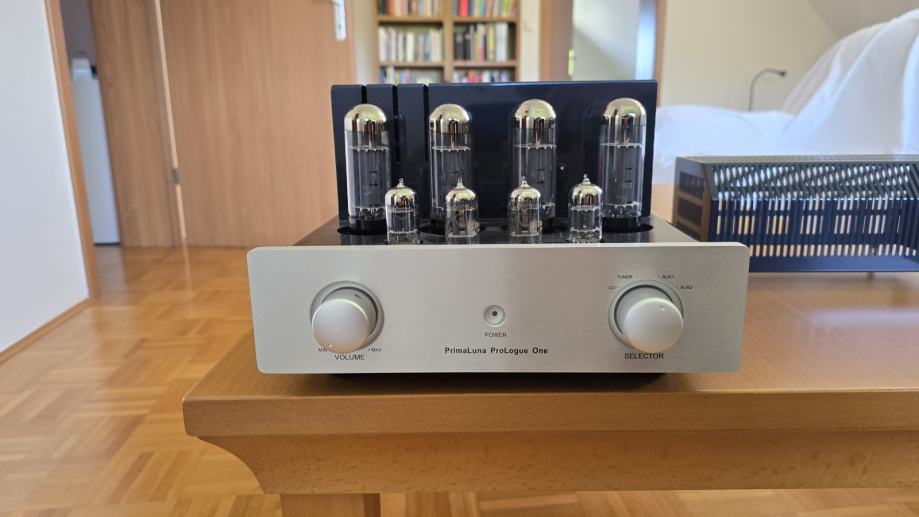 Prodam odlično ohranjen integriran ojačevalec Primaluna Prologue One. Gre za stereo 35W (na kanal, torej 70 W) 4-kanalni ojačevalec, ki temelji na EL34 elektronkah, ki ima zelo napredne funkcije (soft start verzje, avtomatska nastavitev bias, kar zelo olajša menjavo elektronk,...).