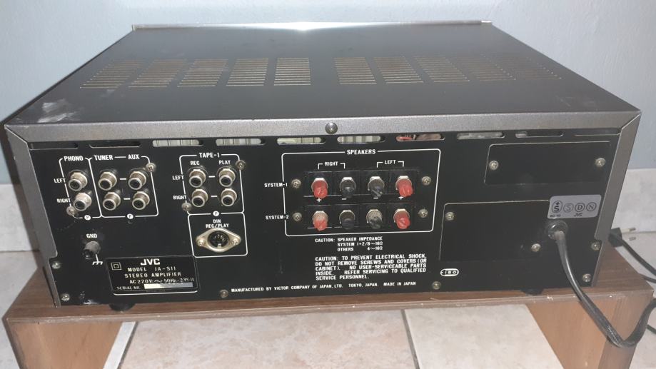 Prodam lepo ohranjen, normalno delujoč ojačevalec JVC JA-S11, 2x30W, 8 ohma, letnik 1977, širina 39 cm.