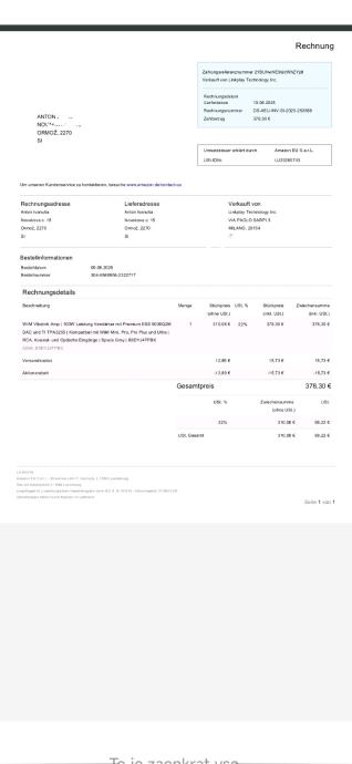 Prodam navedeni ojačevalec, ki je bil kupljen letos v juniju...