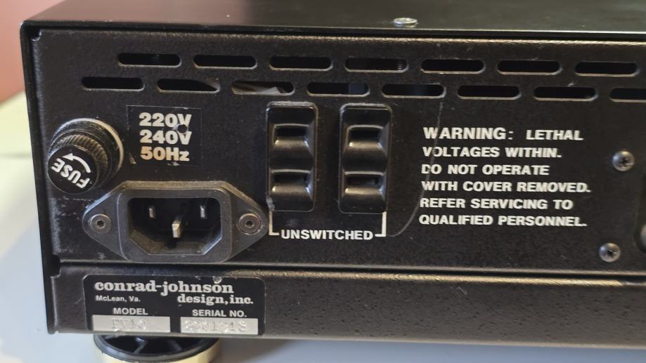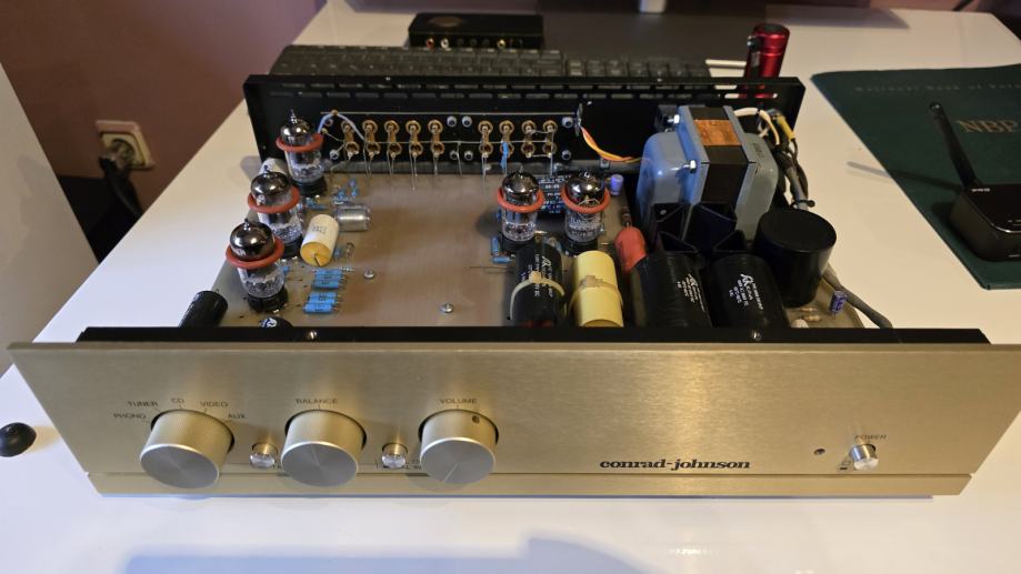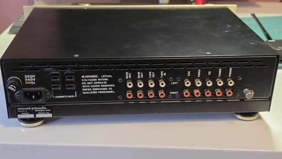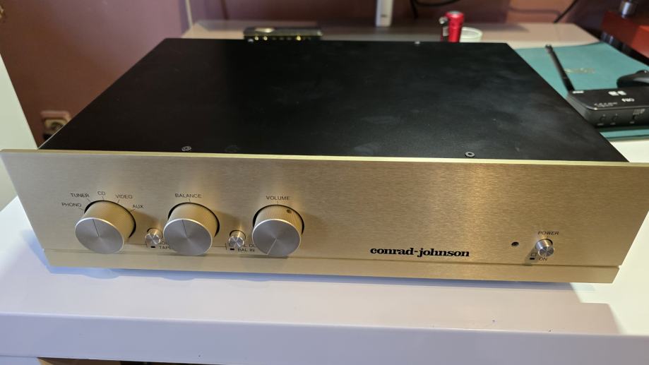 Vrhunski cevni vintage predojačevalec CONRAD-JOHNSON PV10, prodam. Gre za originalni model iz leta 1990 (serijska številka 2301318) z vgrajenim fono modulom (2xECC83 + 1xECC81). Stanje: blizu mete. Na slikah je naprava za prodajo. Ne uporabljam PHONO, zato ne morem potrditi stanja elektronk v modulu PHONO, v linijskem delu novih elektronk TUNGSOL ECC81 in TAD 5751. Naprava nima originalne embalaže, daljinec ni bil tovarniško priložen.