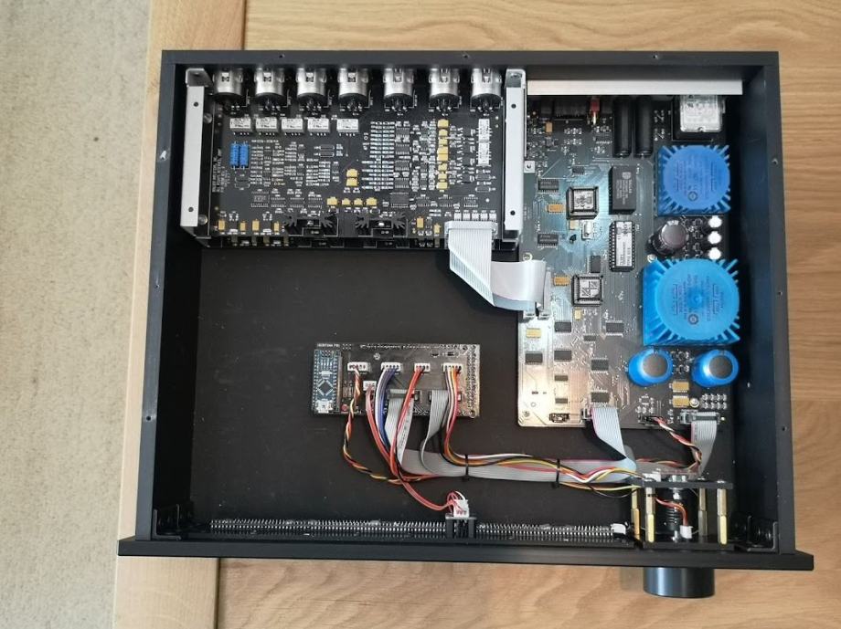 Ta ojačevalnik je nastal, ker mi je bil izvorni Boulder 810 glede na lastnosti všeč, zelo pa me je motil uporabniški vmesnik, majhen zaslon, preobčutljiv gumb za glasnost in okoren daljinski upravljalnik. DIY predelava je odpravila vse pomanjkljivosti.