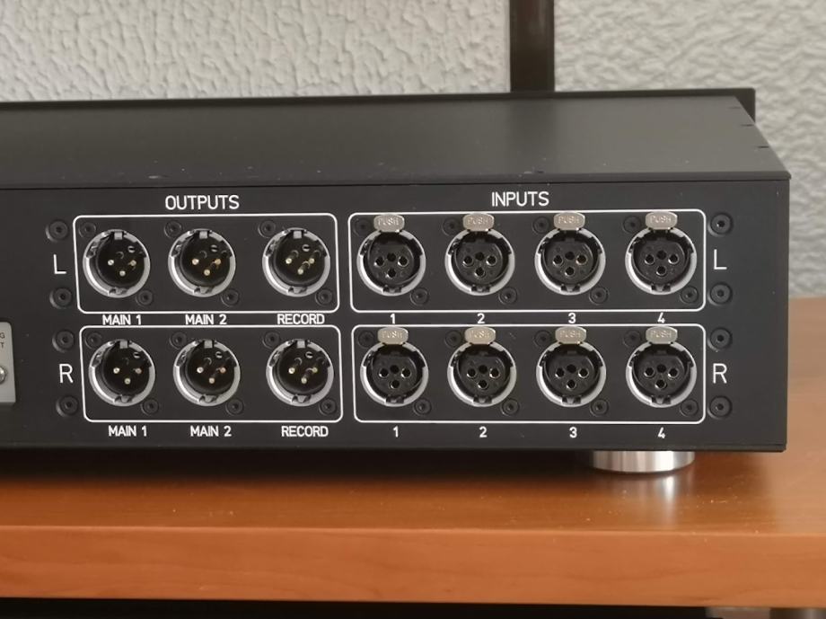 4 vhodi, 2 izhoda za močnostni ojačevalnik + izhod za snemanje.