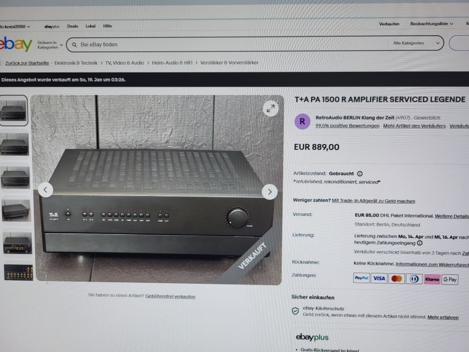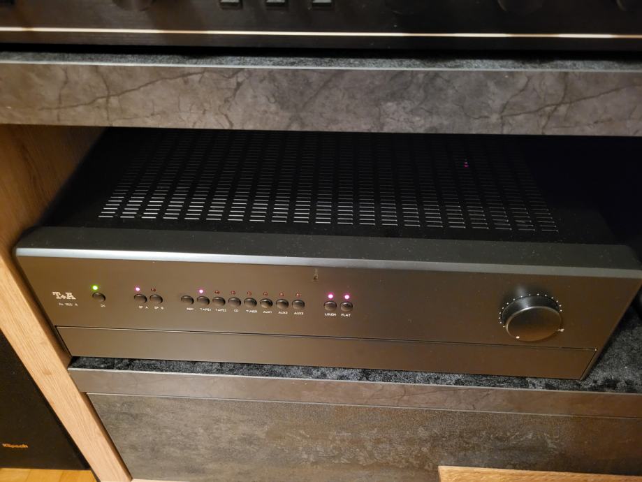 Ojačevalec visoke kvalitete, lep (z eno praskico zgoraj na sredini prednje plošče - glej sliko št 1,2 in 3) in tehnično brezhiben, prodam. Po pisanju Hi-Fi revij T+A izdelki spadajo med najboljše HiFi izdelke izdelane v nemčiji. Posebno ojačevalci so uvrščeni v najviši razred po kvaliteti in zvoku kar seveda vpliva tudi na ceno teh izdelkov.(ta ojačevalec je nov koštal leta 2012 2.600 evrov. (Brez Phono modula !! Ta se nov prodaja po ceni 650 EUR - glej zadnjo sliko)