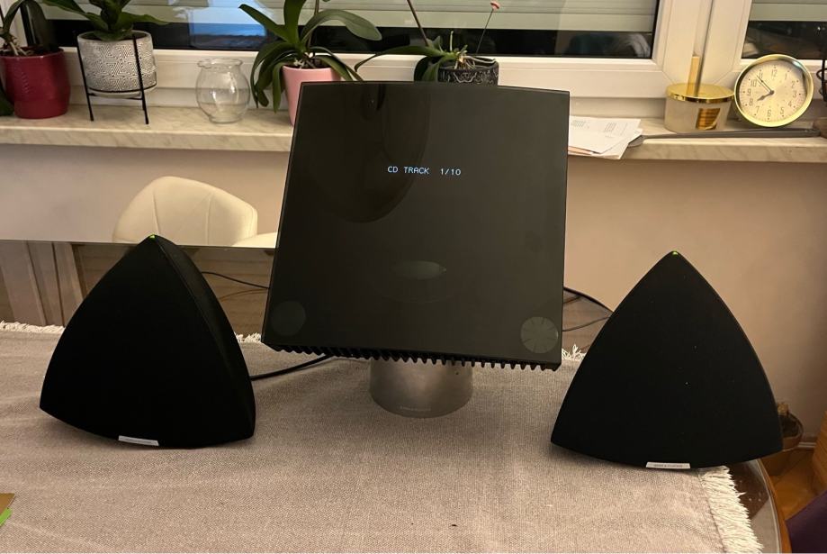 Prodam rabljen vrhunski avdio sistem Bang&Olufsen, ki vključuje elegantne zvočnike Beolab 4 in predvajalnik Beosound 4 v črni barvi. Sistem je v dobrem stanju in ponuja izjemno kakovost zvoka, značilno za prestižno dansko znamko. Triangularna oblika zvočnikov in minimalističen dizajn predstavljata popolno kombinacijo estetike in funkcionalnosti za zahtevne ljubitelje glasbe.