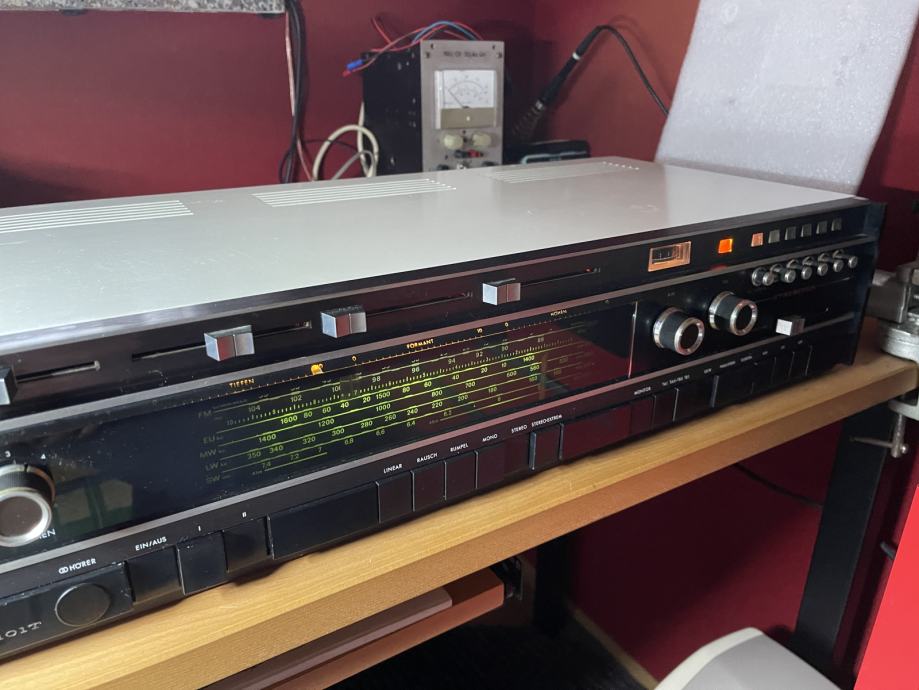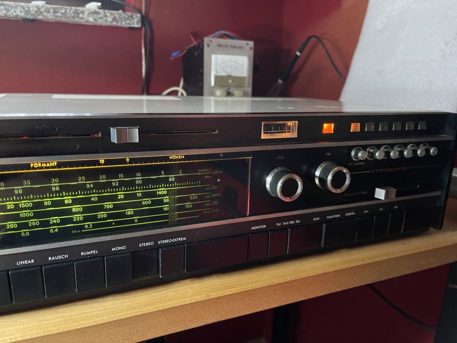 Super retro look in delujoč 100w monster receiver, a potreben servisa (par žarnic, tranzistorji…). Letnik 1972-75, težak 12.5kg, dimenzije 650 x 147 x 300 mm.
