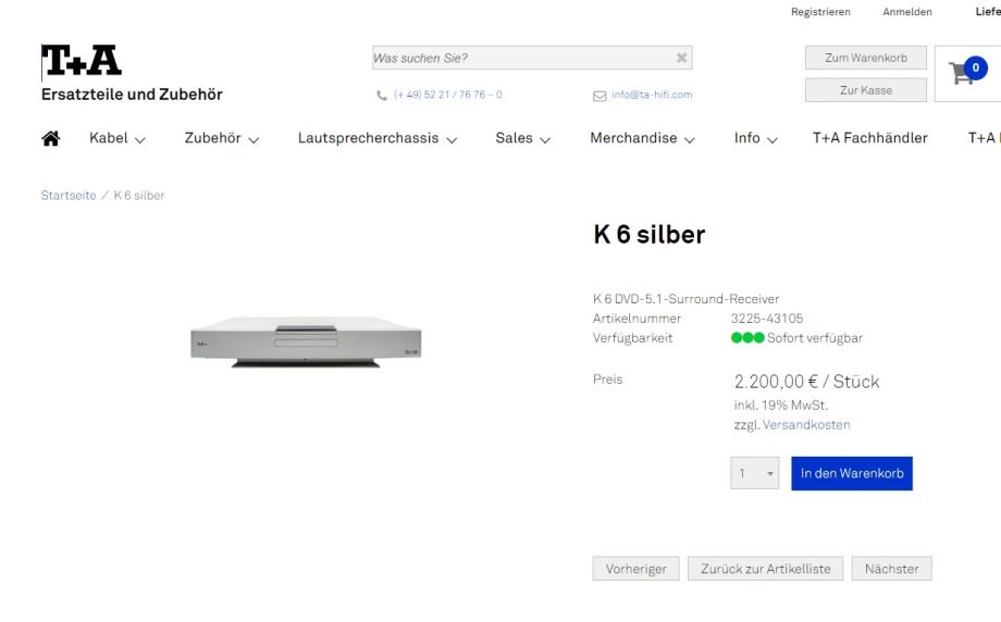 Cena novega je bila preko 5.500 EUR, še vedno se pri T+A prodaja iz B-stocka rabljeni PO 2.200€.
