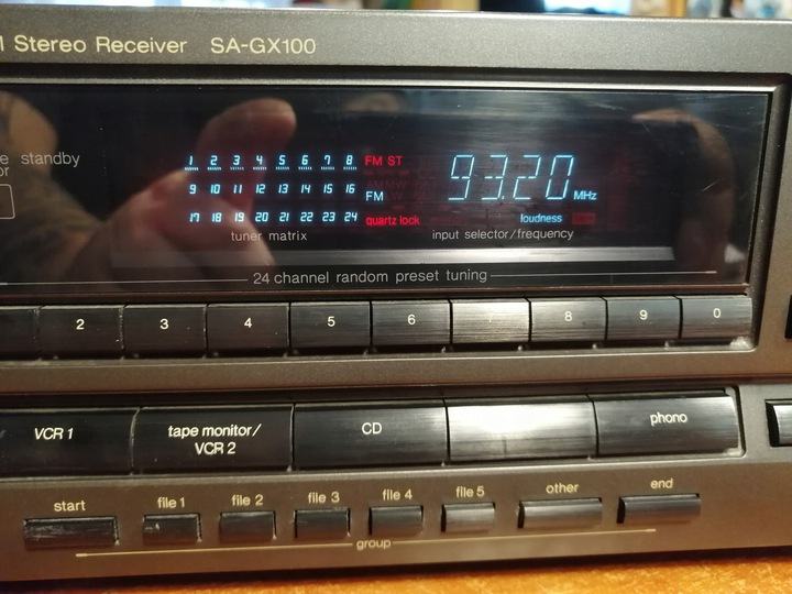 Na voljo je zares odličen HI-FI Stereo Receiver popolnoma obnovljen (restavriran) ter originalne Japonske proizvodnje iz leta 1992 in firme Technics modela SA-GX100 ugodno prodam. Odlikuje ga vrhunski zvok ter izjemen sprejem radisjkih postaj na kratkih in dolgih radijskih frekvencah z digitalnim memorijem 24-ih polnilnih mest ter vrhunskim Digital Synthesizer integriranim TUNER-jem. Zelo dober frekvenčni odziv od 7 Hz do 40.000 Hz pri dinamiki signala 90 decibelov in minimalnim popačenjem zvoka (distortion) z 0.03% THD. Kvalitetna Vintage Tehnologija in ekstra klasa ter tehnika vrhunskega HI-FI ojačevalca bo kos tudi močnejšim in kvalitetnejšim zvočnikom saj nudi 2 x 120 Wattov maksimalne glasbene moči, medtem ko je Sinusna ali RMS moč normirana z realnimi 2 x 80 Watti moči pri 8 omski upornosti priključenih zvočnikov. Poleg tega na ojačevalec Technics kateri ima integrirani TUNER oziroma radijski digitalni sprejemnik s 24-timi postajami spomina lahko priključite tudi vse ostale naprave, kot so klasični gramofon PHONO, CD, Tape 1 ali VCR 1 in Tape 2 ali VCR 2 vhode in pa klasično 75 omsko anteno ali dodatno zunanjo ali sobno dipolno radijsko anteno. Vgrajena preklopna stikala za A spekter oriroma par ali B par zvočnikov ali A + B kar pomeni pogon vseh 4 zvočnikov v sistemu istočasno, poleg tega vgrajeno preklopno stikalo za Monitor ali Recording Output Selektor oziroma da peljete dalje signal iz ojačevalca na snemalno napravo ali mešalno mizo ter morda še kak dodatni ojačevalec itd.