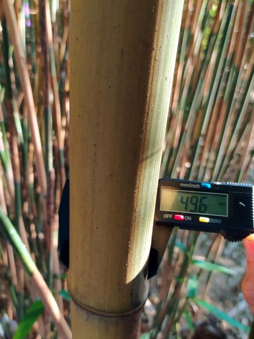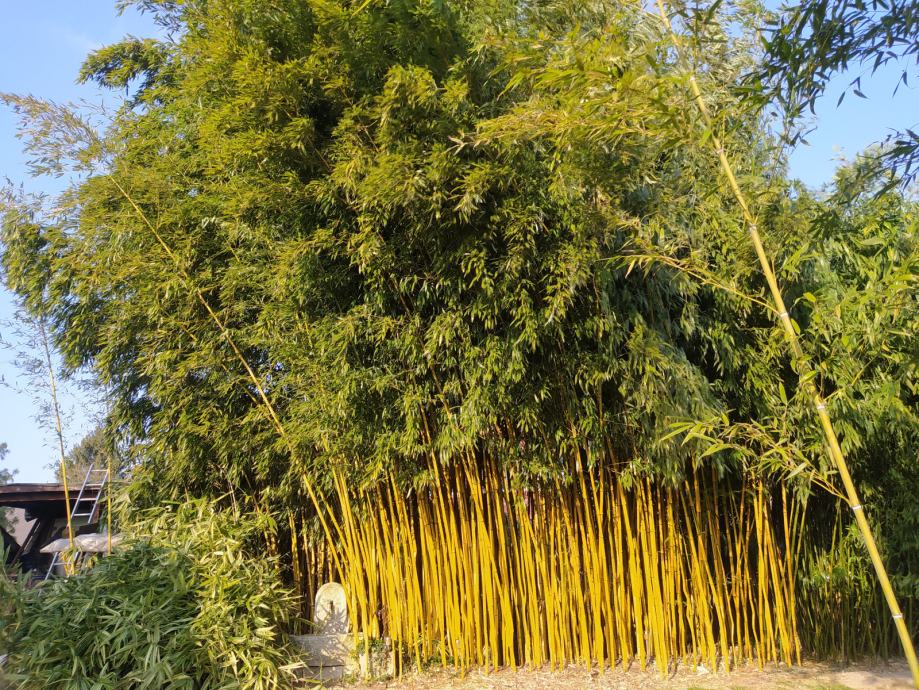 Phyllostachys aurea - Zelo hitro rastoč bambus, ki se kar prerad razširja. Nujno potrebuje omejevanje, če ne se rad preveč razširi tudi tja, kamor ni treba. Zanj je značilno, da ima spodnje členke stebla deformirane in odebeljene, ker so internodiji različno močno stisnjeni. Uporabljali so jih za izdelavo ribiških palic, kjer je spodnji, odebeljen del predstavljal idealen ročaj. Zraste do 6 metrov višine in premera stebel do okrog 3 centimetre. Veje izrašča po celotni višini, zato je zelo pogosto uporabljan kot živa meja, katero se tudi lahko lepo oblikuje (obrezuje). Stebla so sprva zelene barve, po nekaj letih pa se spremenijo v zato rumeno barvo. Stebla so zelo uporabna pri izdelavi različnih opor ali drugih izdelkov.