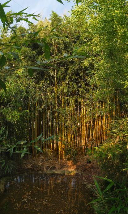Imam kar nekaj različnih vrst bambusa iz različnih rodov. Vse so dobro prilagojene na naše klimatske razmere in večinoma preživijo zimo brez večjih težav, če pa slučajno kakšna zima odstopa in so med zimo poškodovani, spomladi brez težav ponovno poženejo. Bambus je ena najbolj vsestransko uporabnih rastlin. Zanj je značilna hitra rast in to moramo upoštevati tudi pri zasaditvi. Med seboj so si različni in se močno razlikujejo tako po možnosti uporabe stebel, kot tudi po načinu rasti - zastiranje pogledov v obliki žive meje, okrasna zasaditev z izpostavitvijo lepo obarvanih stebel, oblikovanje v okrasne grmičke,... Zrastejo od 3 metre visoko (Hibanobambusa tranquillans) do 10metrov (rod Phyllostachys).