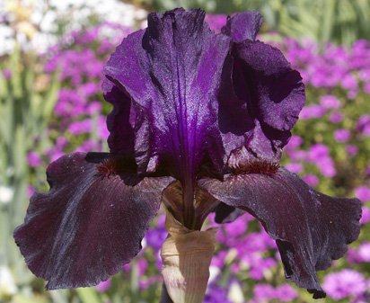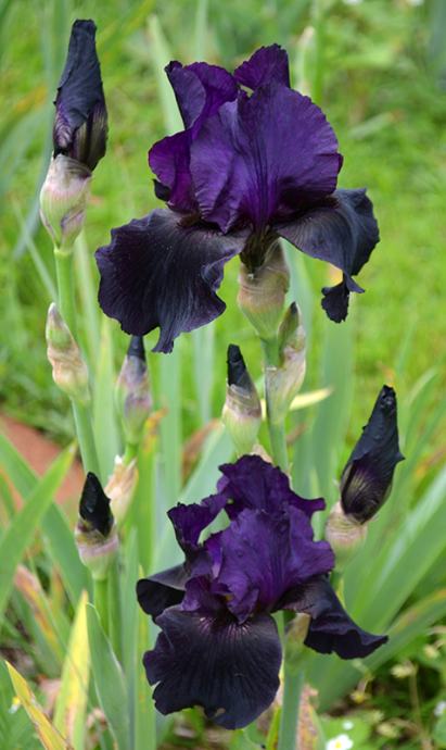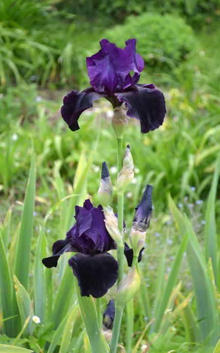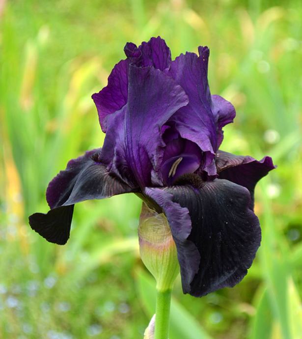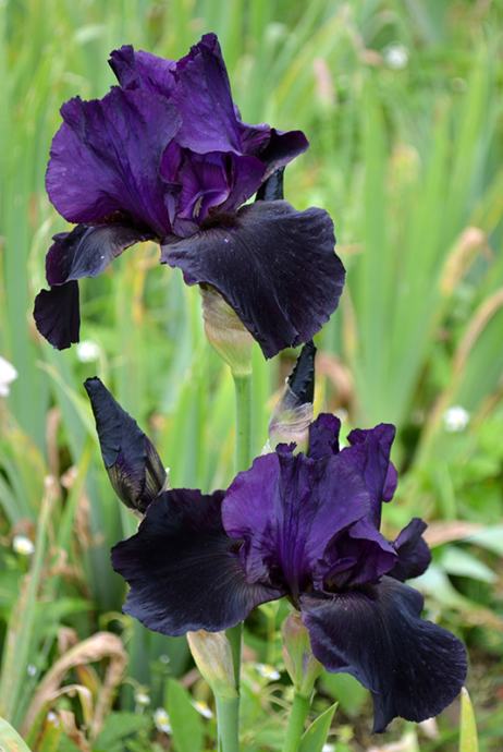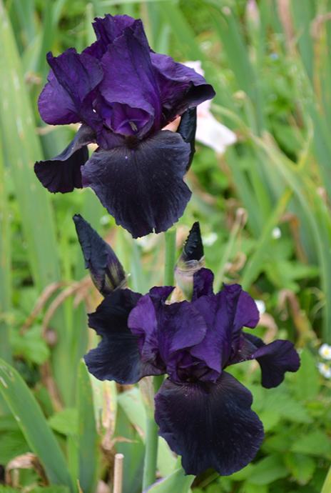 Visoka bradata perunika (Iris germanica) 'Black Flag' ima cvetove izrazito temno-vijolične barve in je prejela več nagrad. Žlahtnitelj Harold Stahly (ZDA). Več informacij o sorti najdete tu: https://wiki.irises.org/TbAthruE/TbBlackFlag