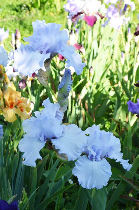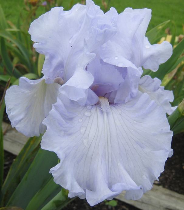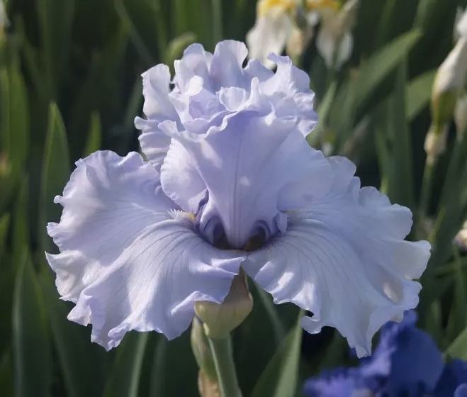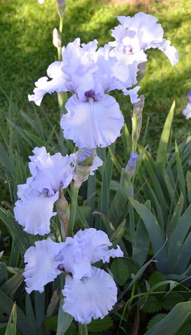 Visoka bradata perunika (Iris germanica) 'Silverado' je zelo svetlo modre barve z odtenki srebrne. Sorta 'Silverado' ima velike cvetove z izrazito valovitim robom in je prejela številne nagrade. Žlahtnitelj Schreiner (ZDA). Več informacij o sorti: https://www.gardenia.net/plant/iris-silverado-bearded-iris