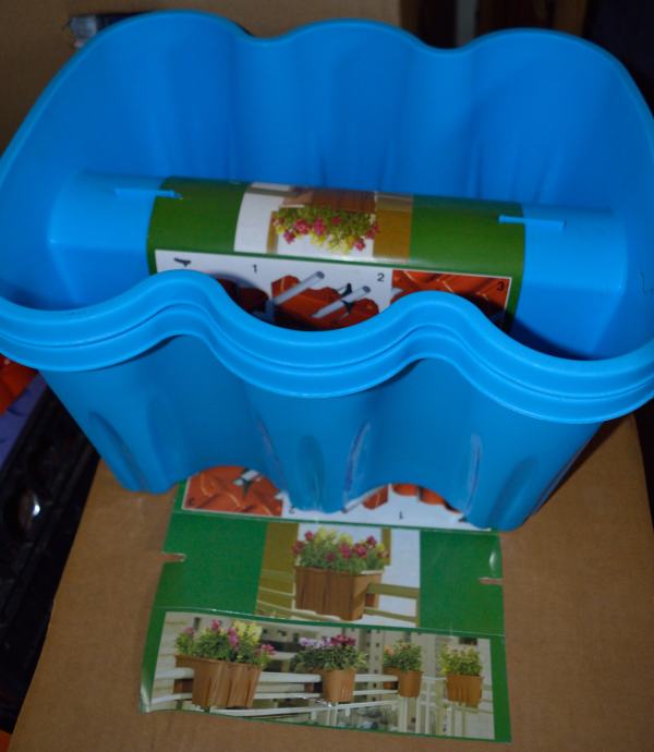 Prodam dva modra cvetlična korita za balkon/ograjo.