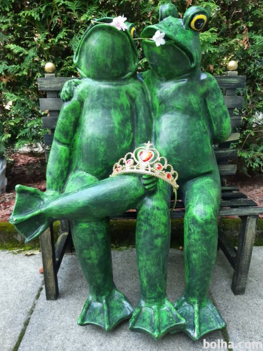 DEKORATIVNA FIGURA ŽABA. MATERIAL: POLYRESIN. KLOP LESENA. VIŠINA. CCA. 65 CM. PRIMERNA ZA NOTRANJO, KOT ZUNANJO DEKORACIJO DVORIŠČE, VRT, RIBNIK ITD.