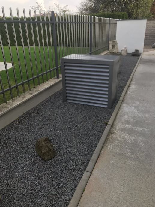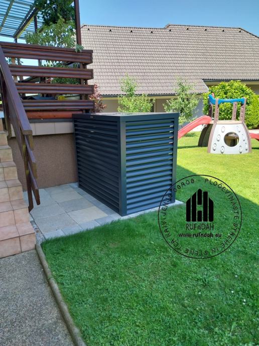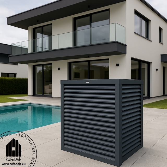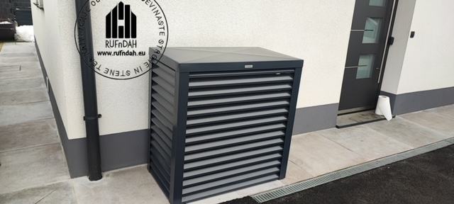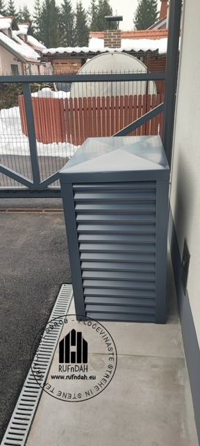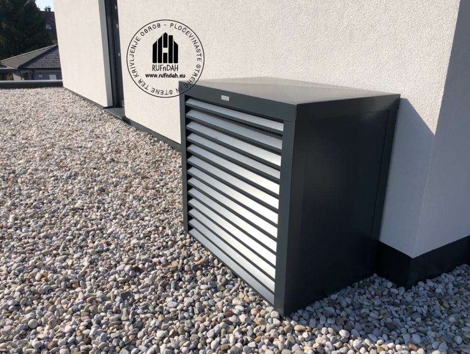 Zaščitni pokrov za zunanjo enoto klime ali toplotne črpalke.