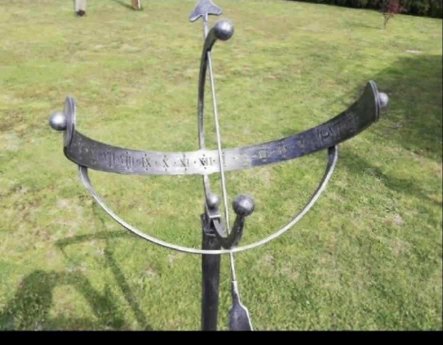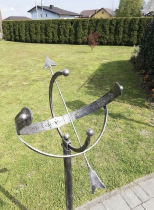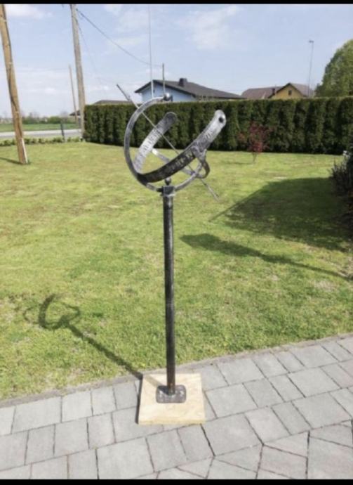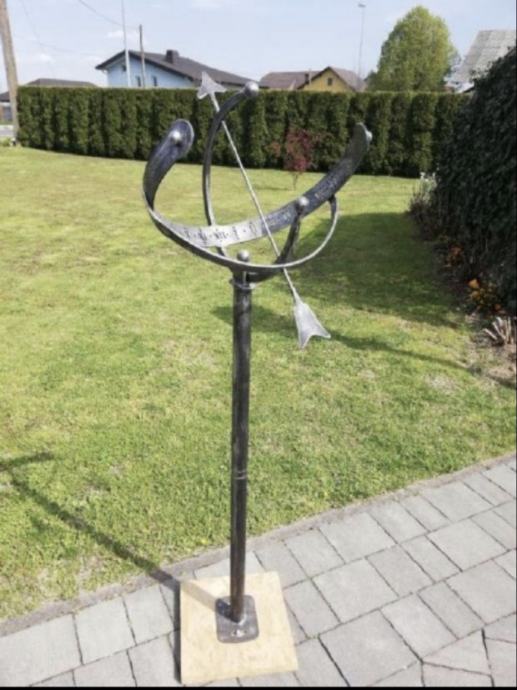 Sončna ura,samostoječa,ročno Prodaja se nova sončna ura na stebru, ročno kovana in je unikat. Barva črno srebrna imitacija.
