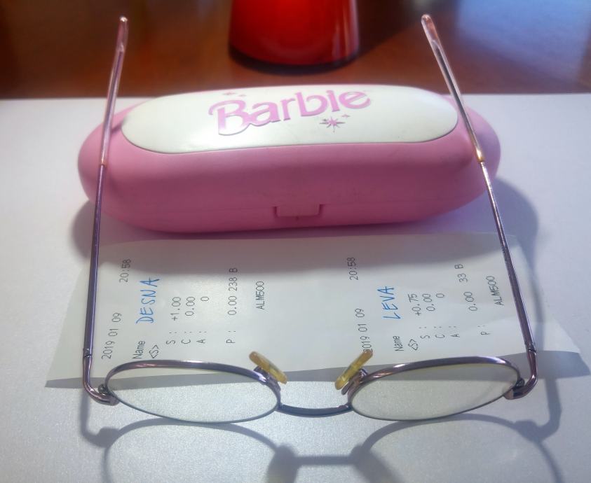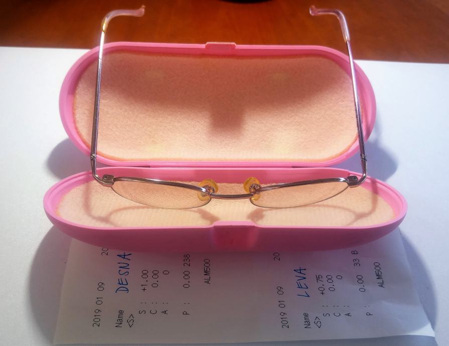 Zaradi spremenjene dioptrije prodamo rabljena ohranjena in brezhibna otroška korekcijska očala za branje, zelo kvaliteten in lahek kovinski okvir v dekliški roza barvi širine 11,5 cm, italijanski »ENRICO COVERI EC 109«, očala izdelana in kupljena pri optiku v Sloveniji (dioptrija D: +1,00 in L: +0,75). Dioptrija preverjena pri optiku - glej izpis. Zraven original etui "BARBIE".