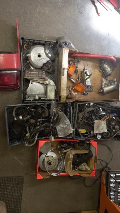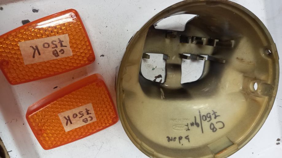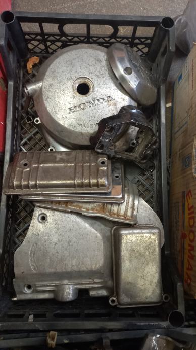 Elektrika ( instalacija,regler,starter,ohišje prednje luči,zadnja luč),alu pokrovi agregata,stranska stojala, osnova sedeža za model CB750 K,