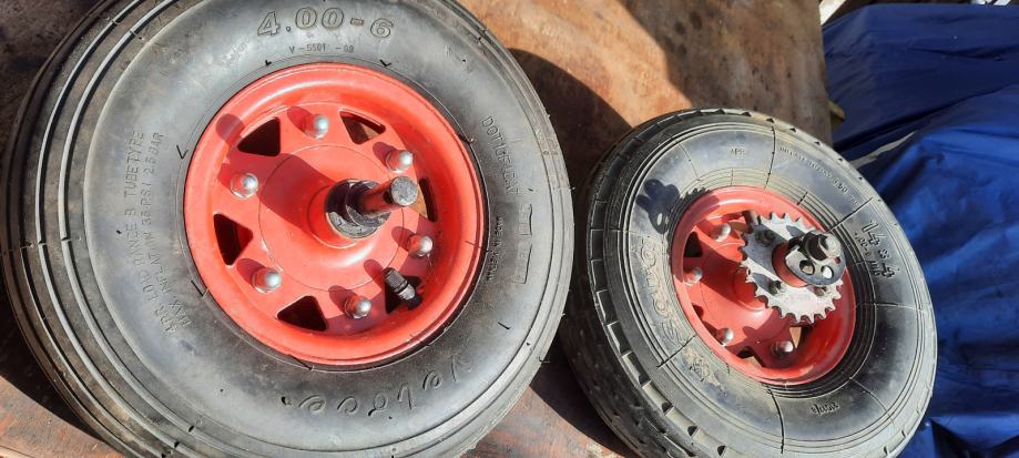 Kompletna, z osovinami, anker ploščami, kot nova, izredno lepa kolesa, spredaj še nova guma, Lokacija ogleda okolica Žalca, možnost dostave, prevzema v LJ, Kamniku, pošiljanja po pošti, možna menjava za kakšne dele za Puch ali Horex, starejše Tomose, BMW od R2 do R69, z mojim doplačilom, ali pa kakšno staro uro, stensko uro, urarsko orodje, kakšne strugarsko orodje, stružne ploščice, večji svedri do MK3, navojno orodje, kak del od Mercedes, razpon od Pontona do W123, tudi z mojim doplačilom..., . 041/408-429 prosim ne kličite in sms-ajte po 21 uri, zvečer raje uporabljajte neslišne metode, bolha sporočila ali gmail: sebastjan.bera@gmail.com