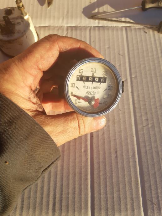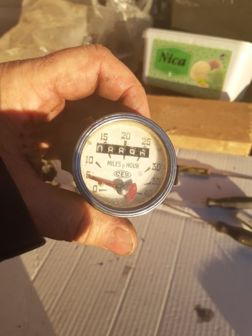 Števec tomos od 0 do 40 milj na uro, C.E.V., za kakšen izvozni model TOMOS-a, eni dvobrzinci so imela takšne števce, je delujoč, premer 48mm, Lokacija ogleda okolica Žalca, možnost dostave, pošiljanja po pošti, možna menjava za kakšne dele za Puch ali Horex, starejše Tomose, BMW od R2 do R67/2, NSU, JAWA, z mojim doplačilom, ali pa kakšno staro uro, stensko uro, urarsko orodje, kakšno strugarsko orodje, stružne ploščice, večji svedri do MK3, navojno orodje, kak del od Mercedes, razpon od Pontona do W123, tudi z mojim doplačilom..., . 041/408-429 prosim ne kličite in sms-ajte po 21 uri, zvečer raje uporabljajte neslišne metode, bolha sporočila ali gmail: sebastjan.bera@gmail.com