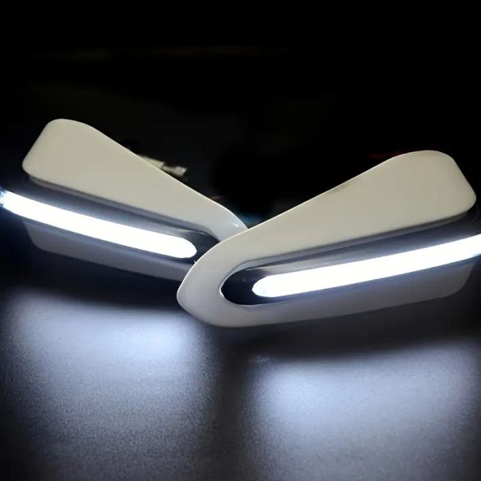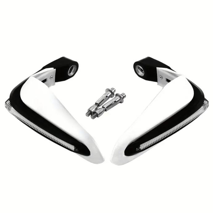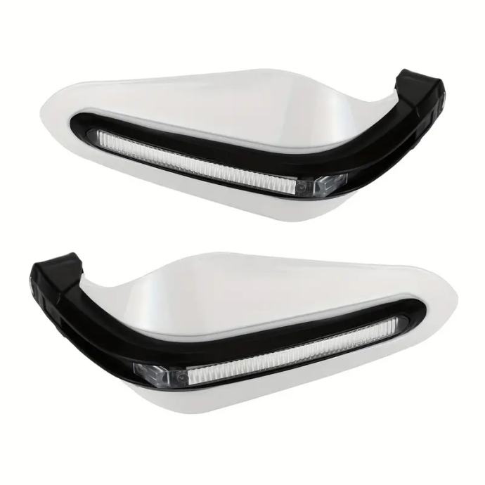 Prodam nove zaščite za roke za montažo na krmilo bele barve. V zaščiti so montirane led lučke. Možna montaža na različne motorje ali skuterje.