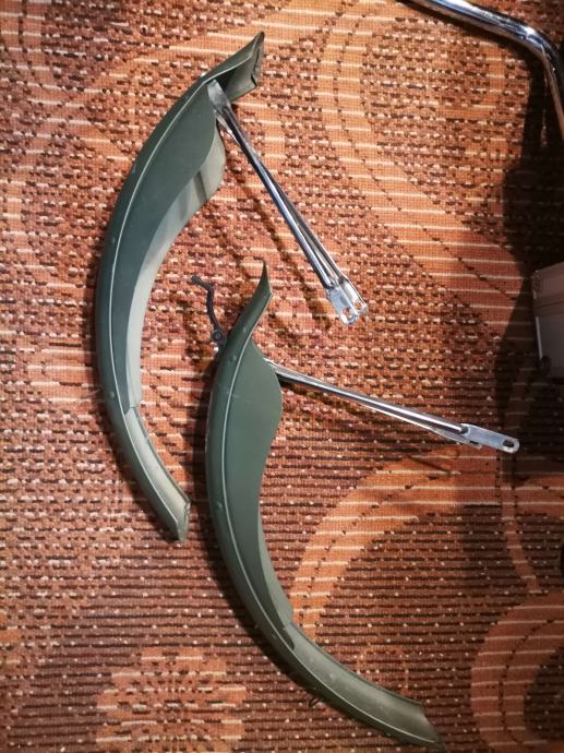 Prodam kromirano krmilo dolžine 66 cm, 2 strešici - blatnika ter luč za namestitev na kolo za čoper izgled.