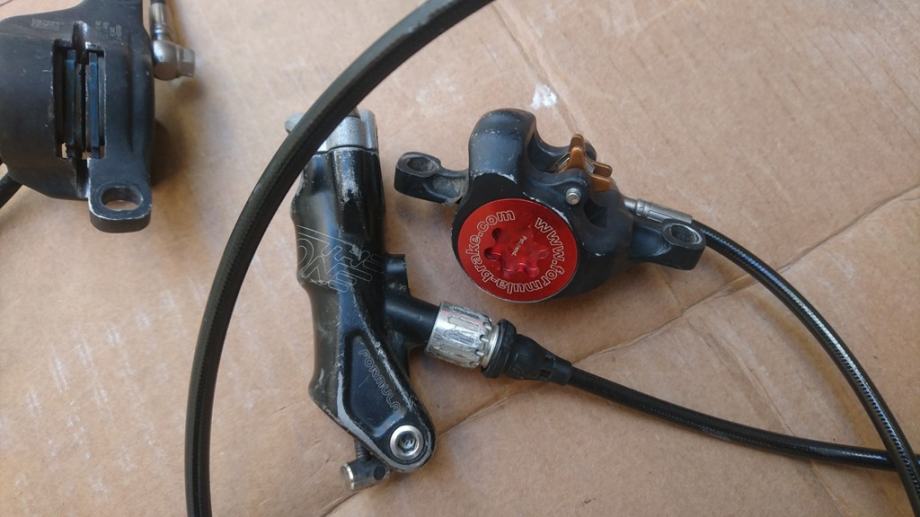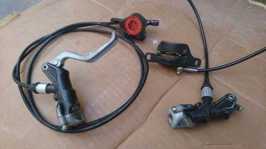 Prodam omenjen par zavor*** KOT NEDELUJOČE - prednja oz. leva je brez ročke. Dolžina prednje cevi cca 87cm, zadnje pa cca 150cm. Kot na slikah. Primerne tudi za rezervne dele.