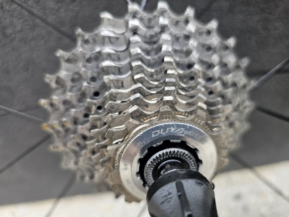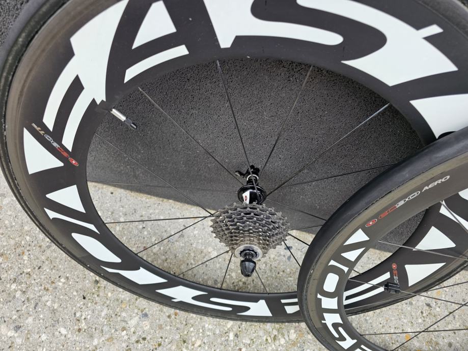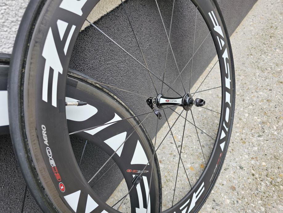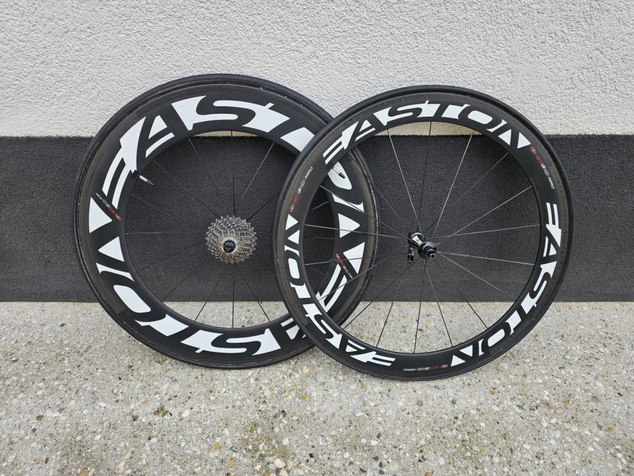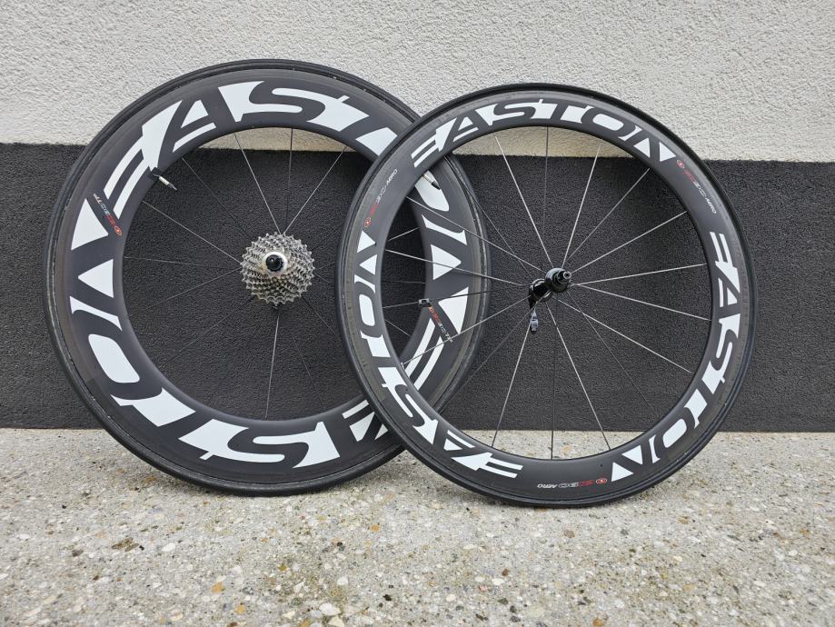 Vrhunski karbonski kolesarski obroči EASTON; zadnji 90; prednji 56mm višine. 700C; Tabular. Kaseta DURA ACE 11-27; 10 redna