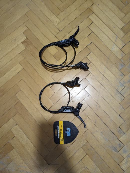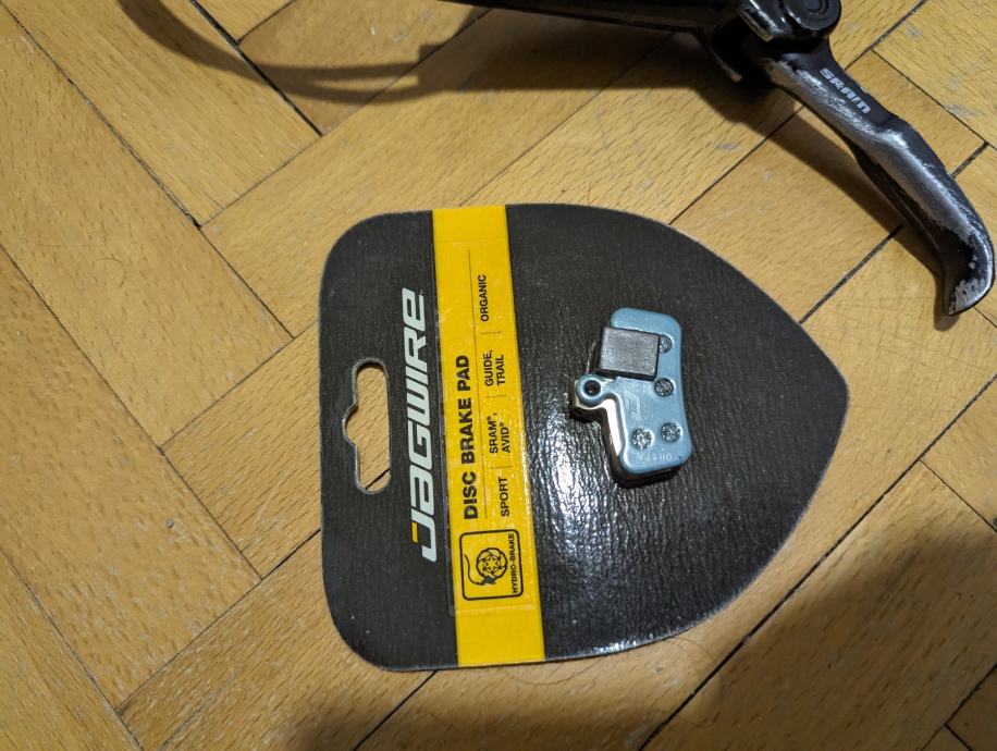 Front has original pads but comes with a new set of Jagwire organic pads. Rear comes with Miles semi metallic pads.