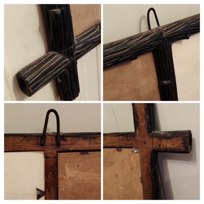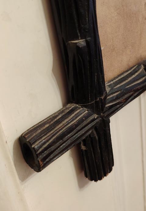 ROČNO REZLJAN LESEN VINTAGE OKVIR ZA ŠTIRI FOTOGRAFIJE.