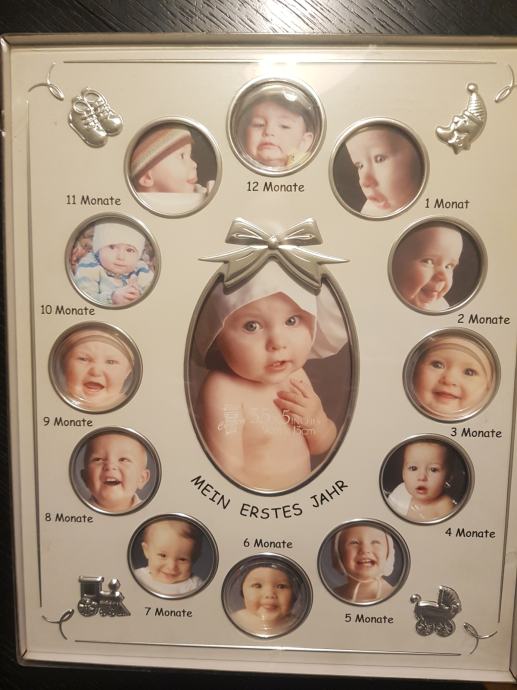 Prodam nov okvir za slike za otrokovo prvo leto. Dimenzije š 24,5 x v 29,5 cm.