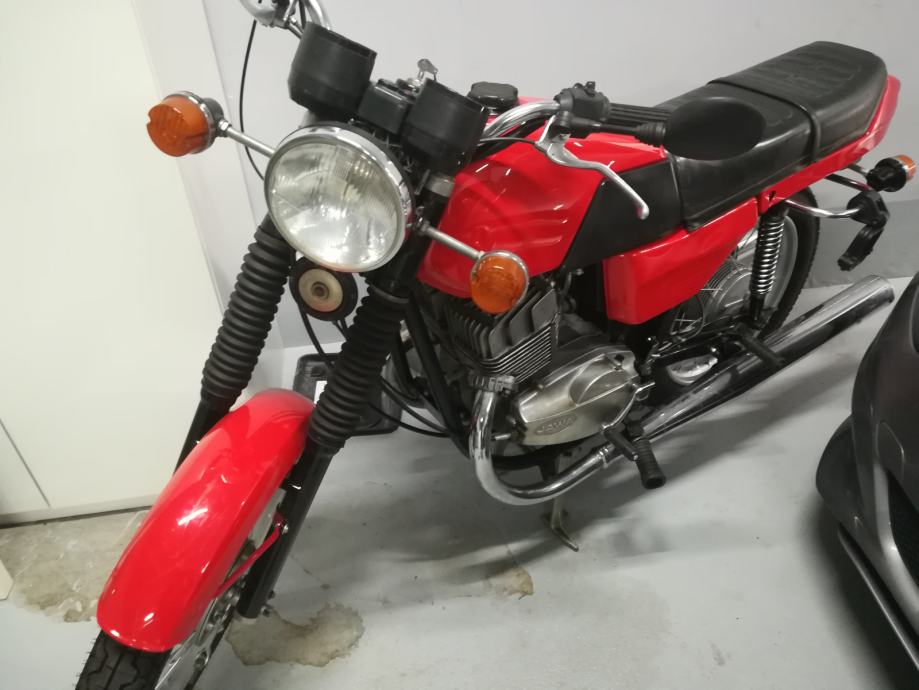 Restavrirana in obnovljena Jawa 350 TS Twin cilinder (Letnik: 1984). Motor je restavriran in delujoč. Edino kar je potrebno na motorju narediti, je ureditev sklopke, saj "cuka" in verjetno ni bila popolno nastavljena.