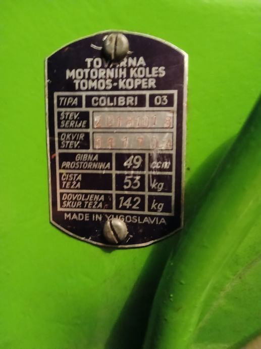 Prodam colibri 03 letnik 1958/59 tel.031251625