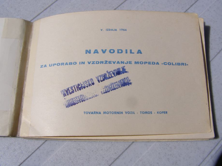 To ni samo servis beležka, temveč tudi servisni priročnik za vse modele Tomosovih mopedov. Skratka za vsak model je pojasnjeno kako se nastavlja mehanika, da bo motor lepo deloval, tudi, ko pride do kvara na cesti in ste primorani sami poseči v mehaniko. Oglejte si posnetke, katerh vse ne morem v tem oglasu prikazati, 031 735 307.