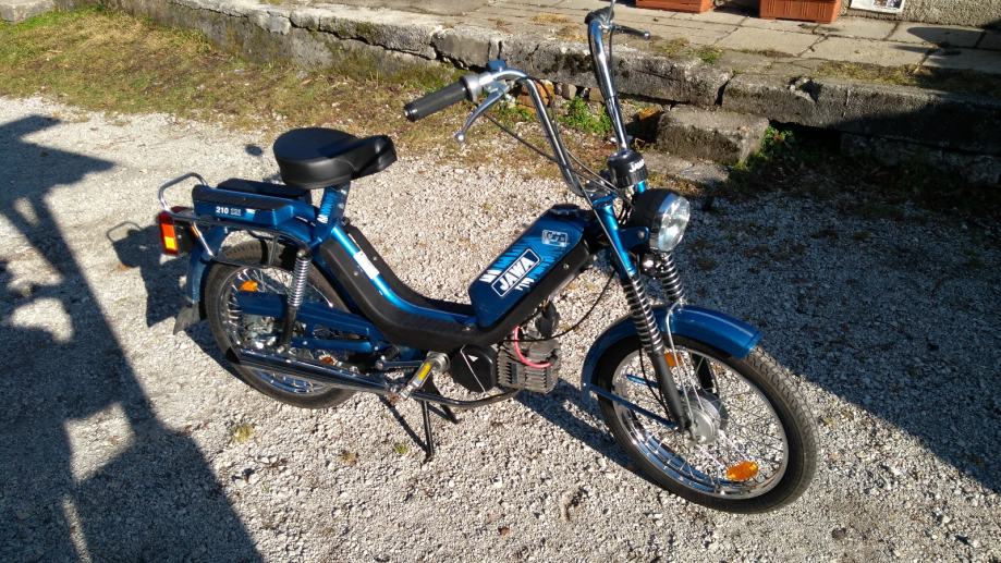 Pozdravljeni prodaja se Jawa,ki je na slikah.49 ccn in 2.1 konja z dvema avtomatskima prestavamaLetnik 1993 in je že old timer.Motorček ima 360 km prevoženih in je v tovarniškem stanju.Zračna tlačilka in orodje še v povoskanem papirju.Kot nova stoji pokrita v garaži. Žal so se original račun in servisna knjižica izgubila.Cena je 2.025 €. NE KLICAT ZA KOLIKO JO PRODAM...ZADNJA CENA.