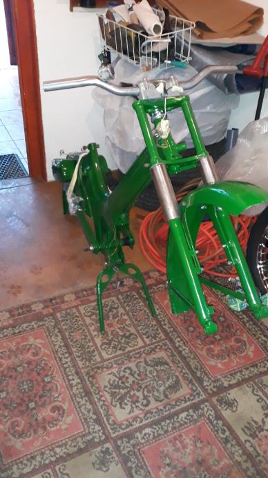 Letnik 70,certifikat starodobnika,popolnoma obnovljen agregat z vgrajeno 5 prestavo,kakor tudi ostali deli z okvirjem.Vsi zamenjani deli so poslikani in prilozeni z racuni.