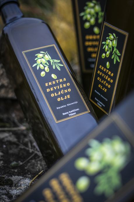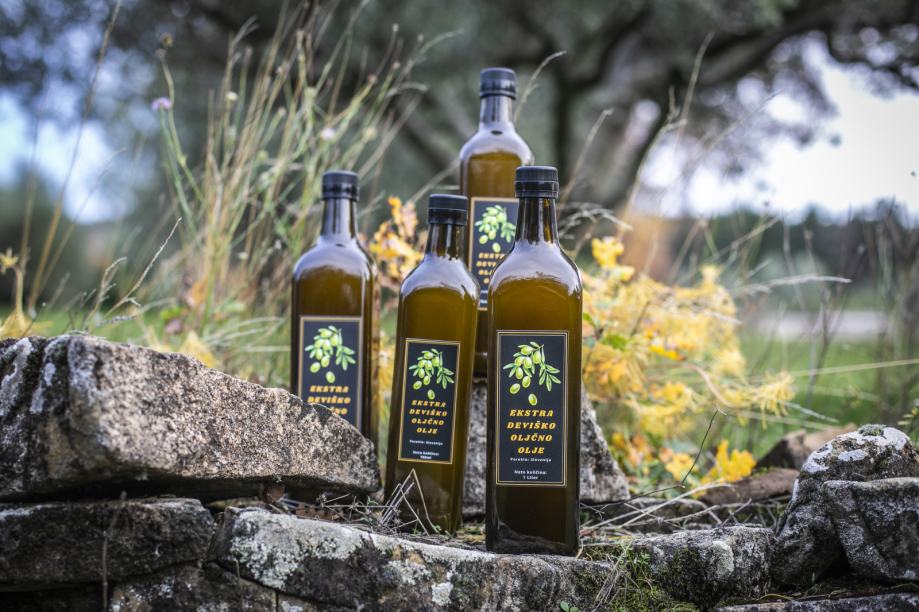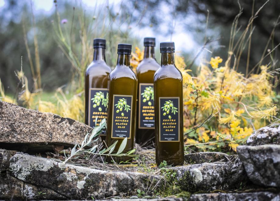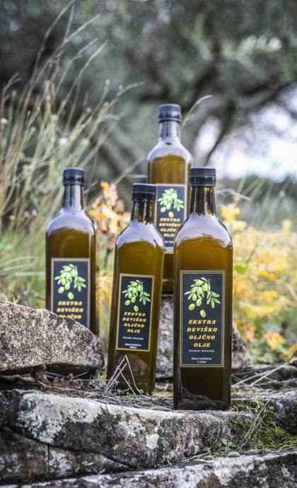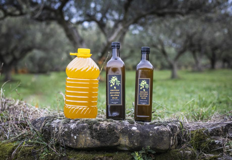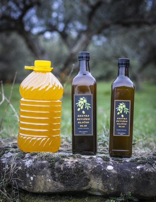 Podajamo domače ekstra deviško oljčno olje, pridelano in polnjeno na primorskem.