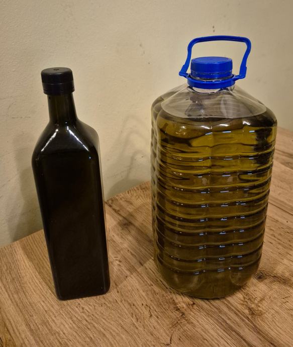 Hladno stiskano oljčno olje iz okolice Kopra iz mojega oljčnika (Sv.Anton). Letos pobrano, isti dan stisnjeno v torklji.
