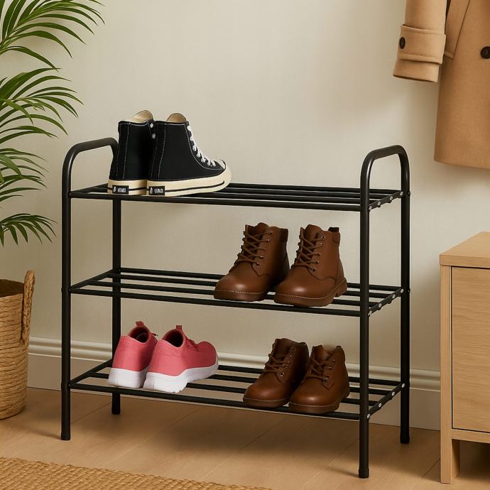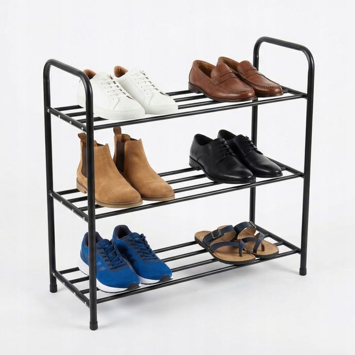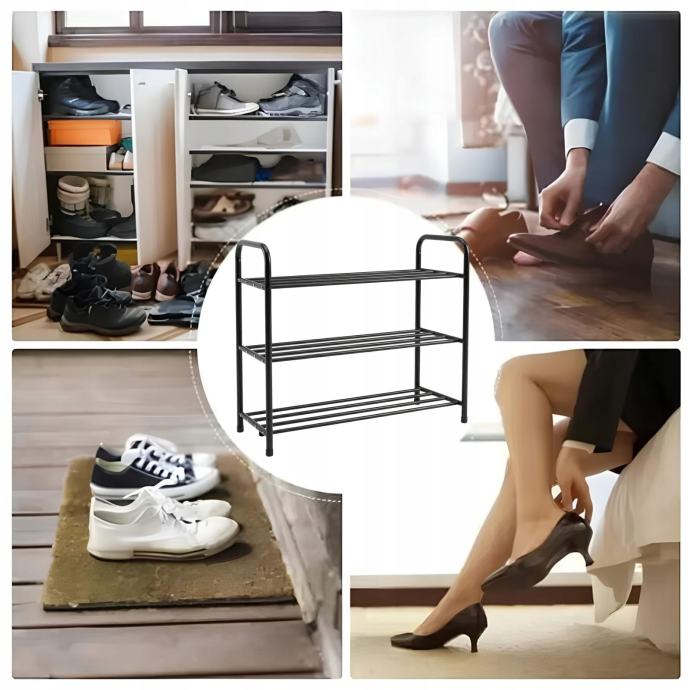 Poslovite se od razmetanih čevljev na hodniku! Predstavljamo vam praktično in elegantno kovinsko polico za čevlje, ki bo v vaš dom prinesla red in preglednost. S svojo kompaktno zasnovo in tremi prostornimi policami je ta organizator idealna rešitev za majhna stanovanja, veže, garderobne omare ali študentske sobe.