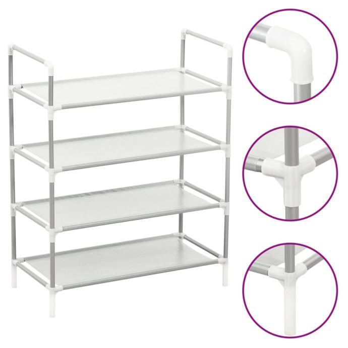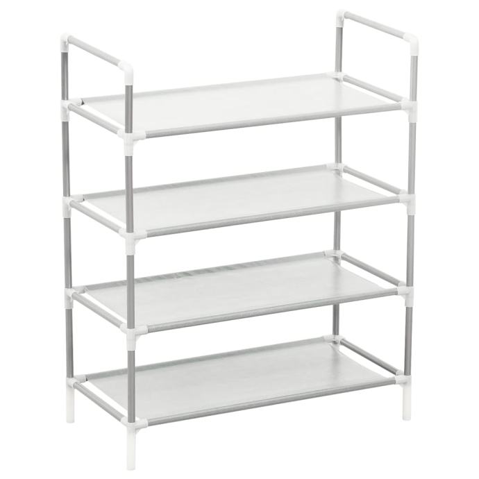 vidaXL Stojalo za čevlje s 4 policami kovina in netkano blago srebrno